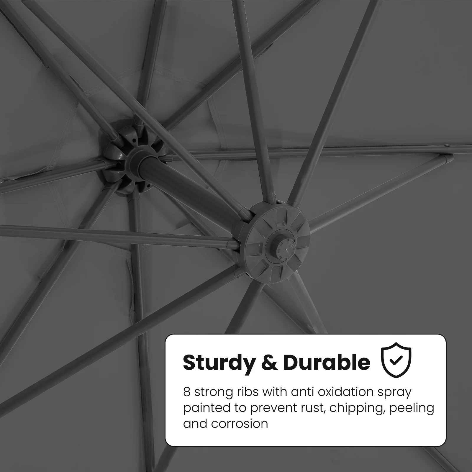 Create a cool and comfortable outdoor oasis with our premium patio umbrella, designed to provide the perfect blend of style, durability, and functionality. Crafted with high-quality, UV-resistant, and waterproof fabric, it offers excellent protection against the sun’s harsh rays while keeping you shaded and relaxed. The robust, rust-resistant aluminum frame ensures long-lasting stability, making it ideal for year-round use.Featuring a user-friendly crank mechanism, opening and closing the umbrella is effortless, while the vented canopy promotes better airflow, preventing heat buildup and enhancing wind resistance.